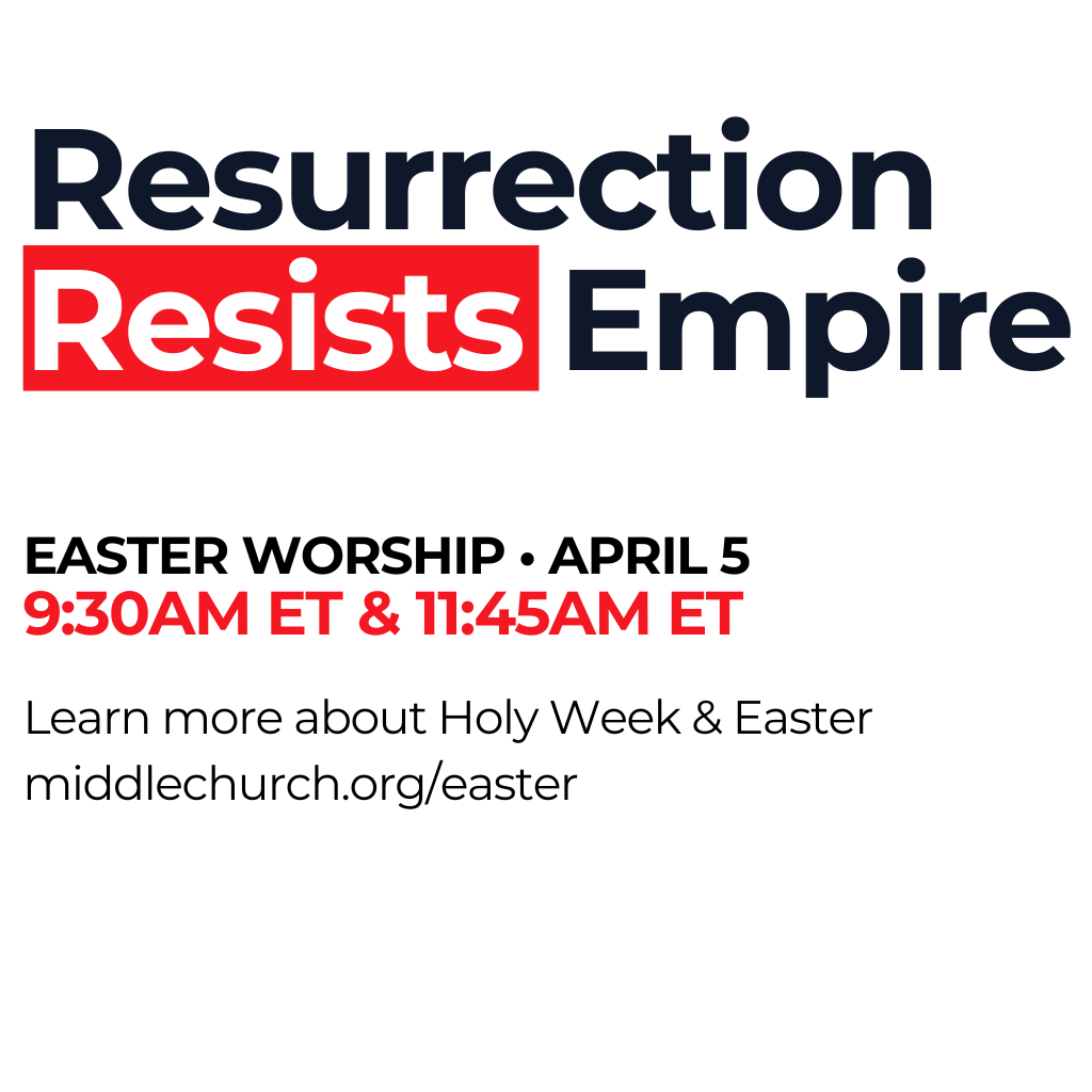 At Middle Church, we believe resurrection calls us to resist empire in all its forms and to build a world shaped by justice, dignity, and fierce love.