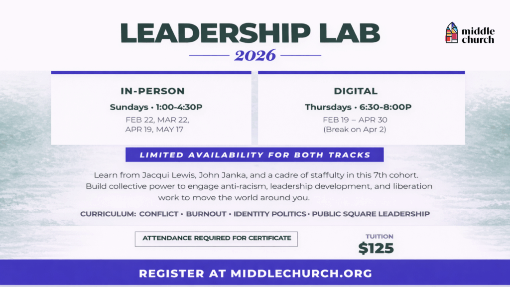 Join a national group of thought leaders, Clergy, activists, and innovators committed to learning together on the way to the Fierce Urgency of Now Conference (Oct 31-Nov. 2). This group meets virtually on the first Wednesday of each month, 1:00-2:00 PM ET, and self divides into the following cohorts: